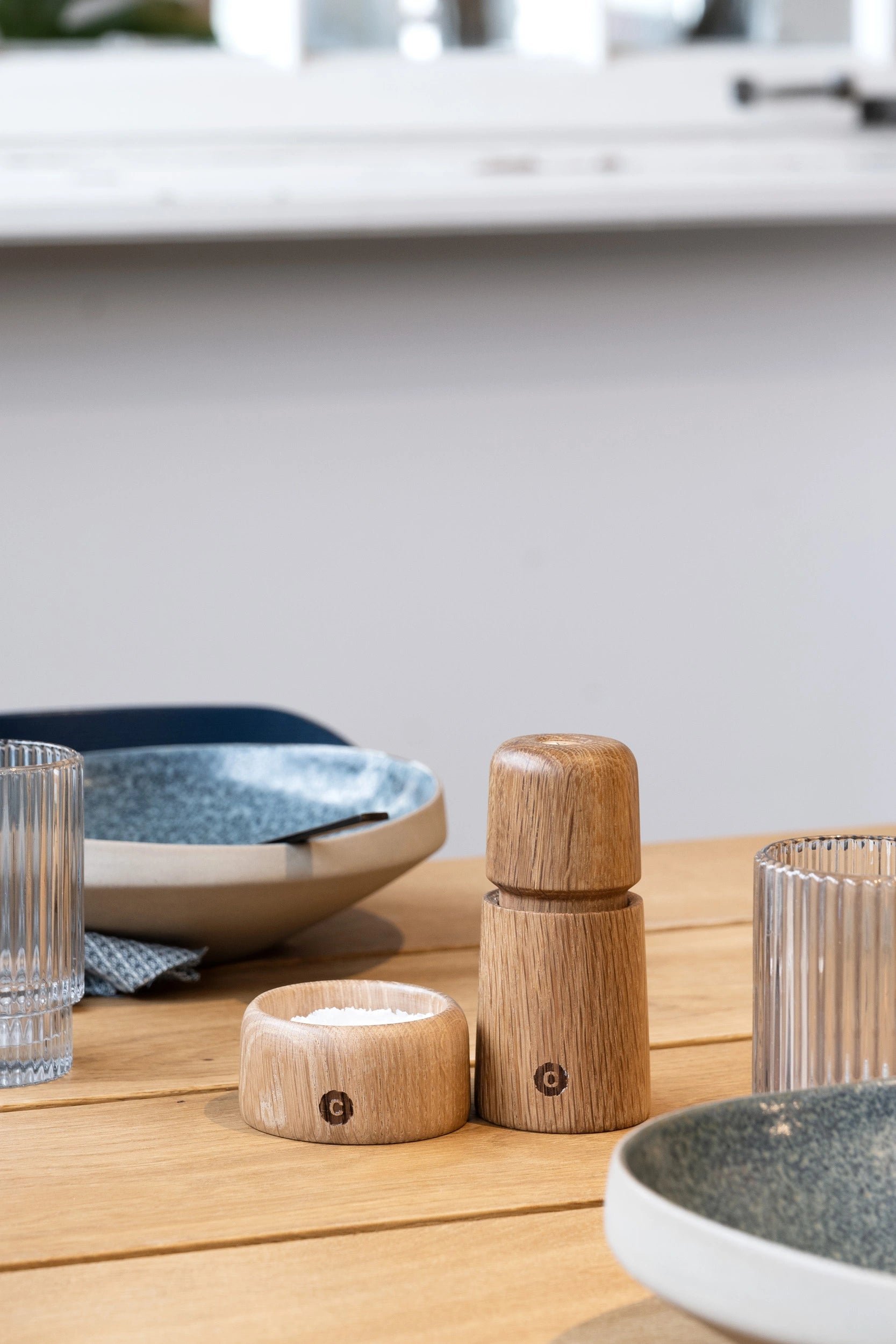 Each piece is unique, thanks to natural wood variation. Available in oak, walnut, porcelain, and stainless steel – whether you prefer a classic oak salt and pepper grinder or a rich walnut salt and pepper grinder, Stockholm adds timeless style to any table.